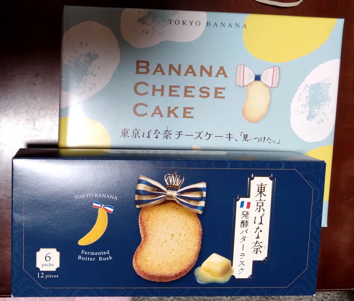 松屋の地下でお土産を買おうと思ってたんですが、天気悪い日で今にも降り出しそうだったのでさっさと東京駅に戻って買った東京ばな奈ラスクとチーズケーキ